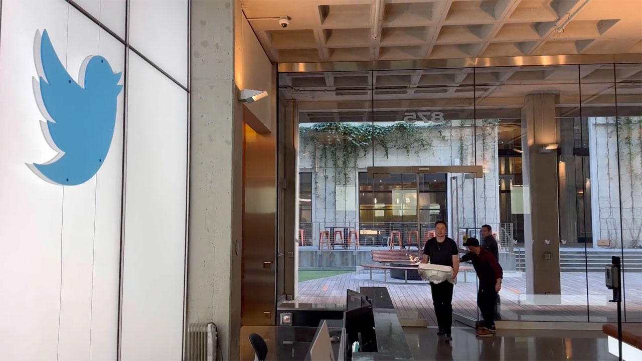 Elon Musk Twitter zaferini de şova dönüştürdü. Twitter genel merkezine sırıtarak elindeki bir lavaboyla girdi.