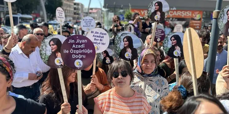 Jîna Emînî’nin öldürülmesi ve “Jin, jiyan, azadî” isyanının yıldönümü nedeniyle kadın örgütleri Van’da yapmak istedikleri yürüyüş valiliğin ‘2 günlük yasak’ ilan etmesinden kaynaklı engellendi. Beşyol Meydanı’nda bulunan Dabbaoğlu Parkında basın açıklaması yapıldı. Açıklamada “Bi, Jin jiyan azadî’yê ber bi azadiyê ve” pankartı ile Jîna Emînî’nin fotoğraflarının yer aldığı dövizler taşındı.